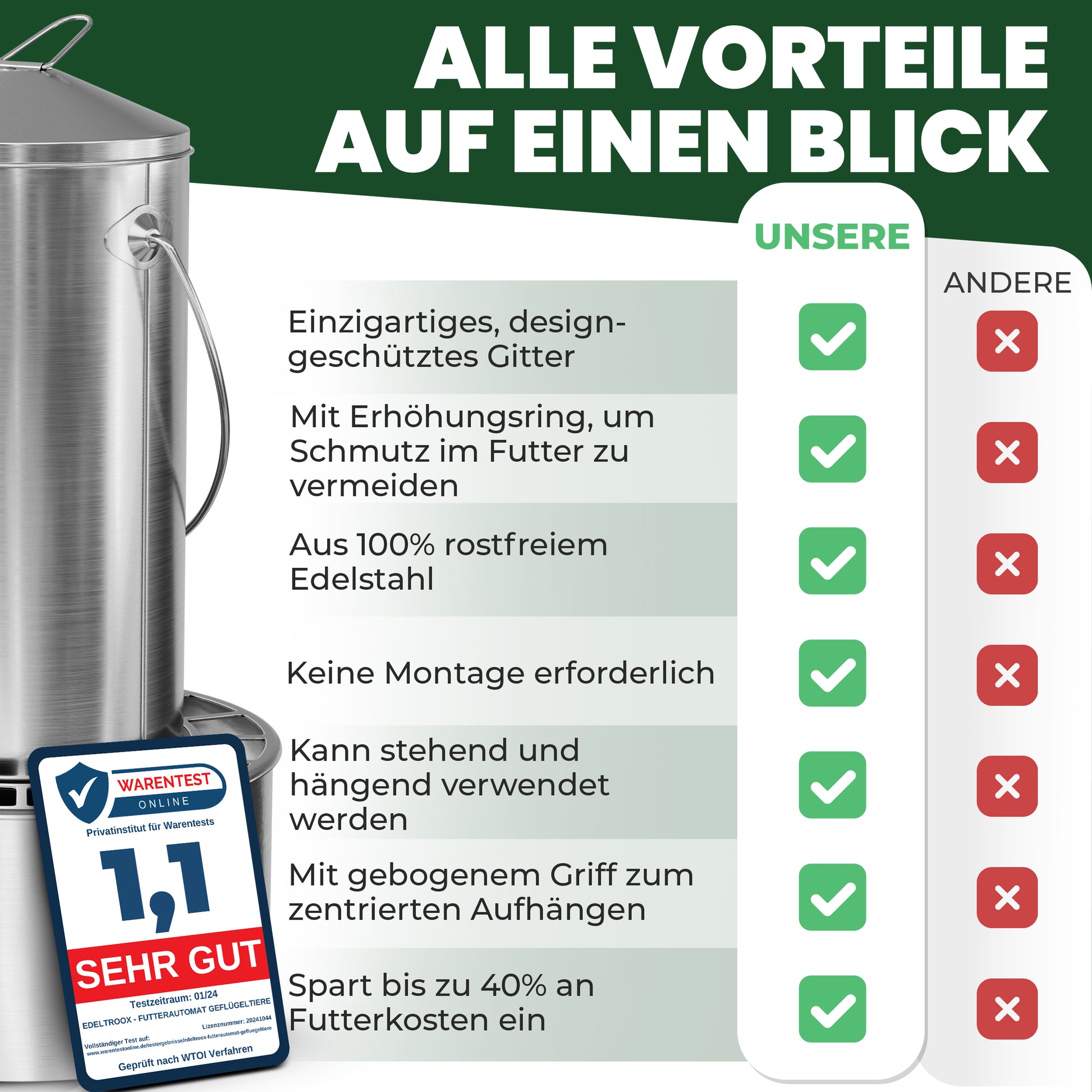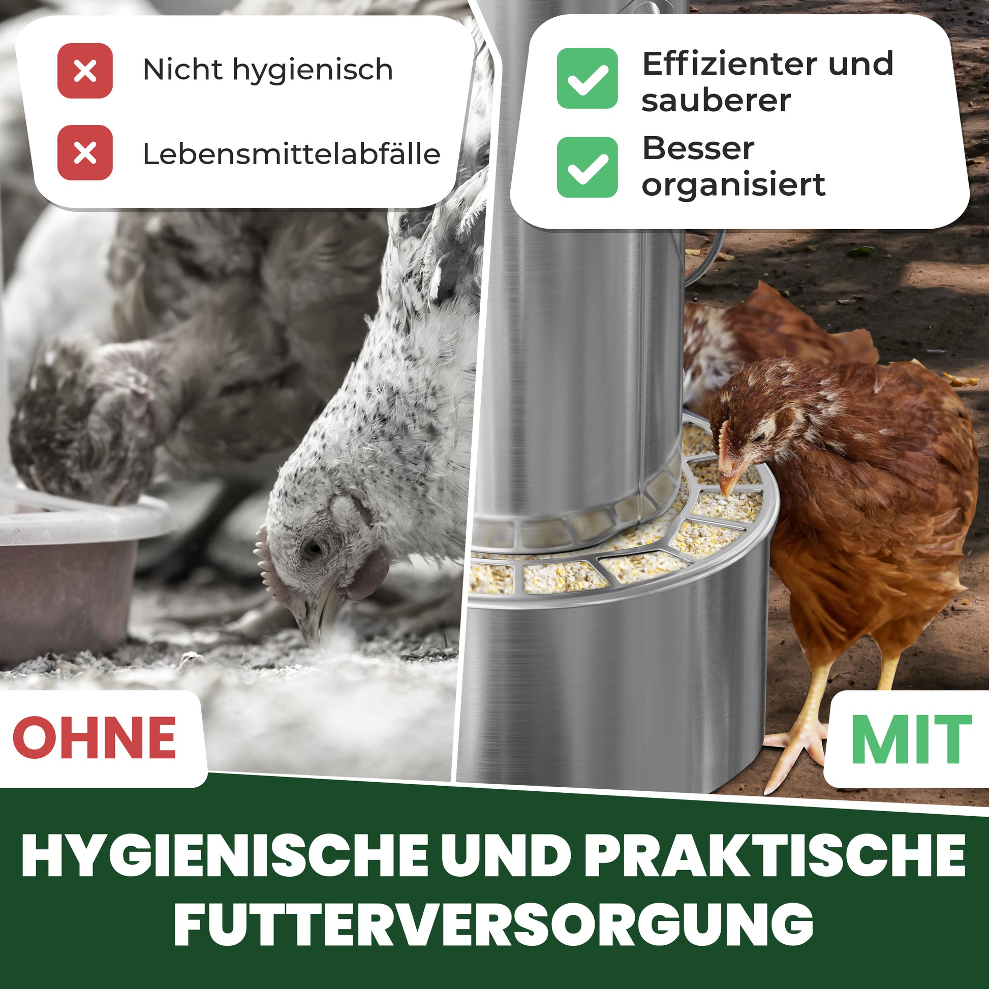 ✅ ENORME EINSPARUNGEN BEIM HÜHNERFUTTER: Unser speziell entwickeltes Gitter und der Erhöhungsring reduzieren die Futterverschwendung erheblich, wodurch Sie signifikante Kostensenkungen erzielen können